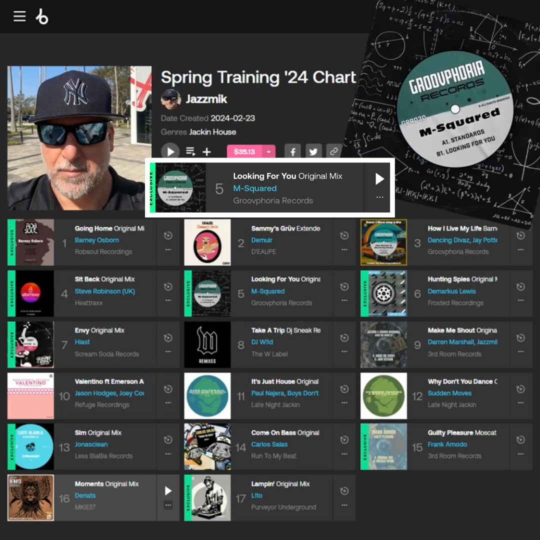 Salute Jazzmik for chart support of my upcoming release ‘Looking For You’ on Groovphoria Records out March 1st on Beatport! Thank you! Check out Jazzmik’s Beatport Chart here: https://www.beatport.com/chart/spring-training-24-chart/806034